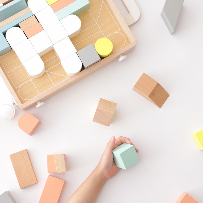 遊び・片づけ・おでかけがひとつに。旅する木の積み木セット
