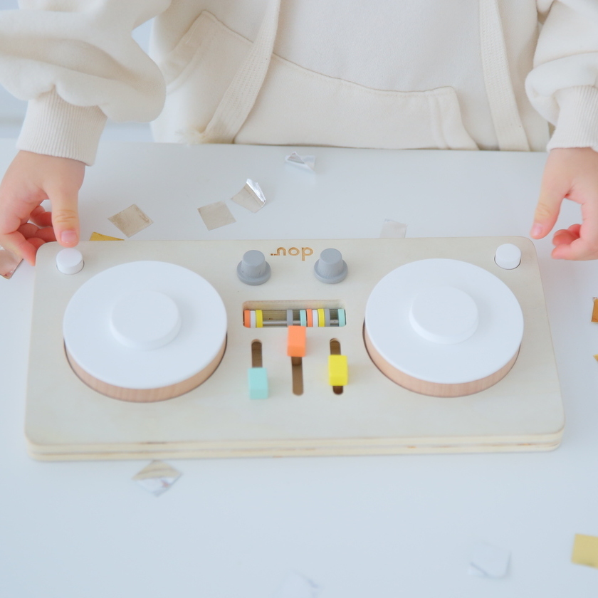 遊びながら「音」と「指先の感覚」に出会える、木製のDJのおもちゃ