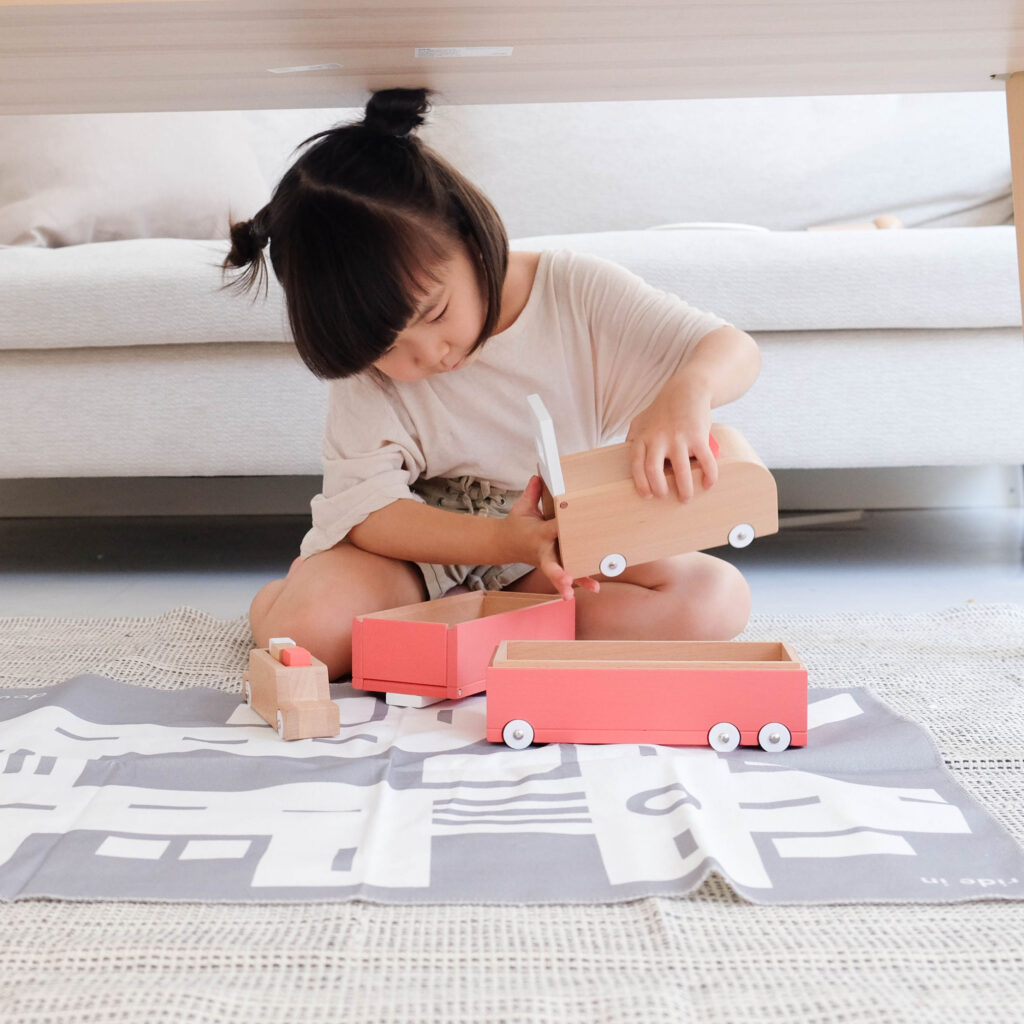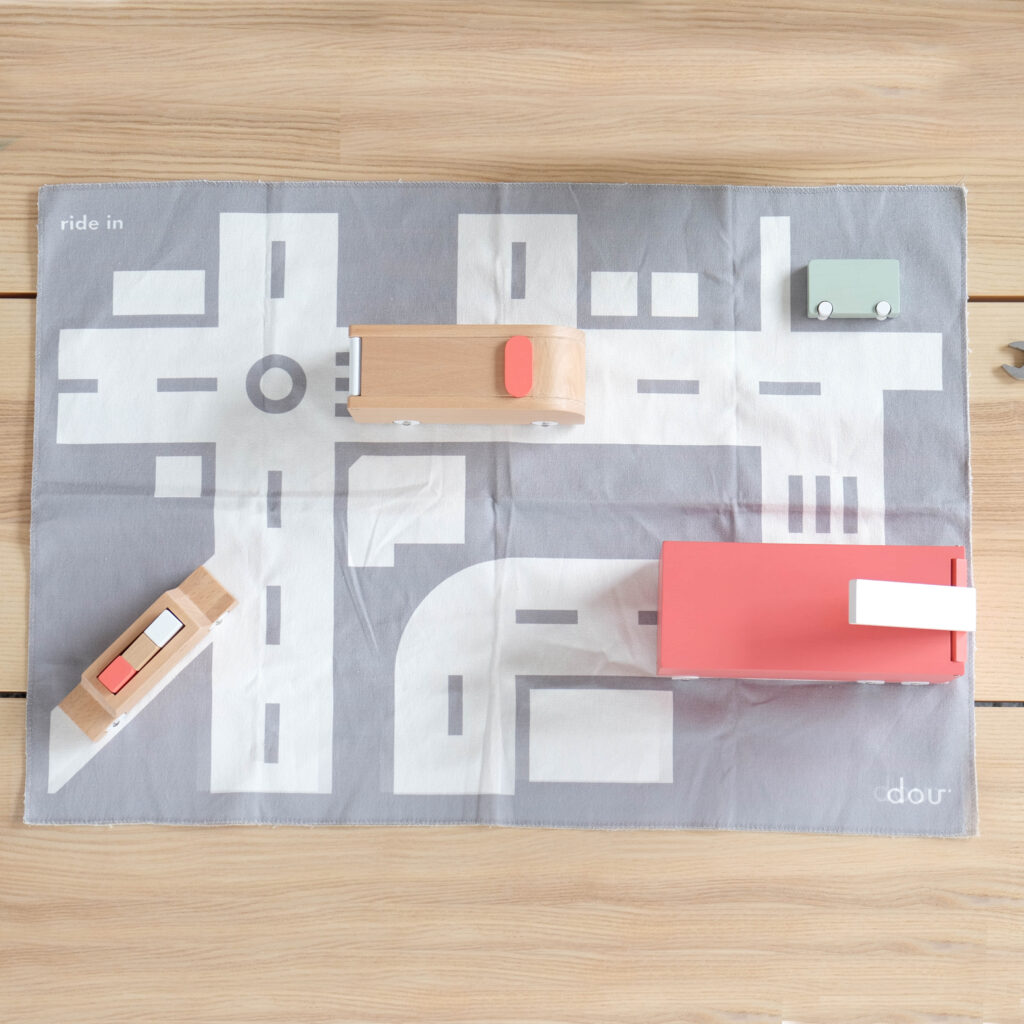 付属のMAPを使ってバス停ごっこをしたり、タクシーにぬいぐるみを乗せたり。小さな世界を自分たちで作っていて、毎日ストーリーが変わります。