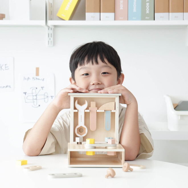 | 何歳から遊べますか? | 目安は 3歳頃〜。ネジやボルトを回す動作がスムーズになり、道具への関心が高まる年齢からが適しています。 (※小さなパーツがあるため、誤飲には十分ご注意ください) |