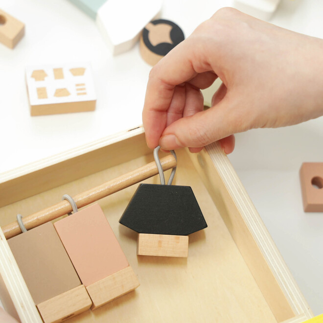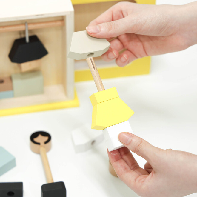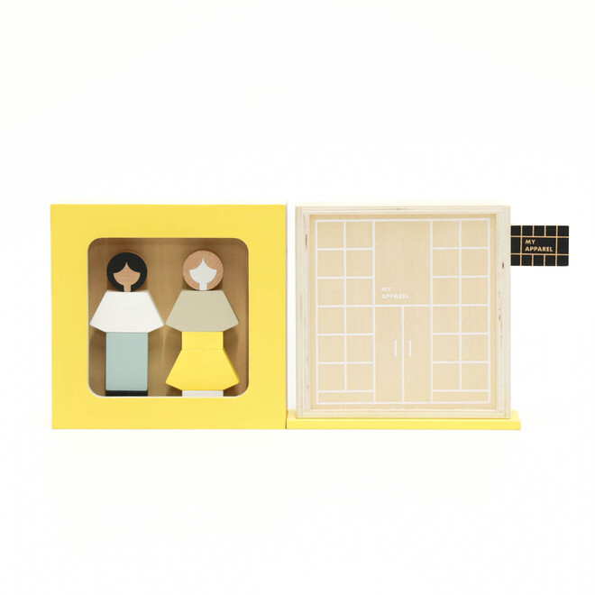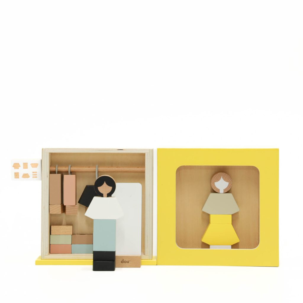 DOU BOOK MY APPAREL は、木のブロックをお洋服に見立てて、自由に“コーディネート遊び”ができるスタッキングトイです。